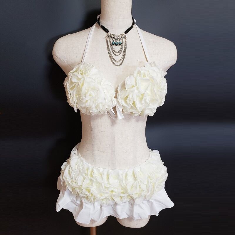 【 チュアンピサマイ】ハンドメイドフラワービキニ スカート/ホワイト F